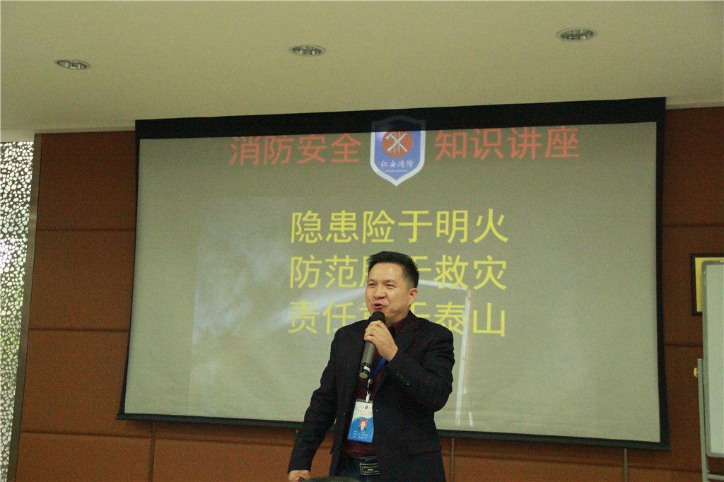 培訓中,徐軍主任通過典型火災案例,采用圖片和視頻相結合,并與參訓人員互動的方式,講解了消防基礎知識、防火滅火知識、火場逃生及滅火器的使用方法等消防安全知識。通過徐軍主任的生動講解和火災圖文資料展示,使大家對撲滅初期火災及火災逃生自救的能力有了深刻了解。