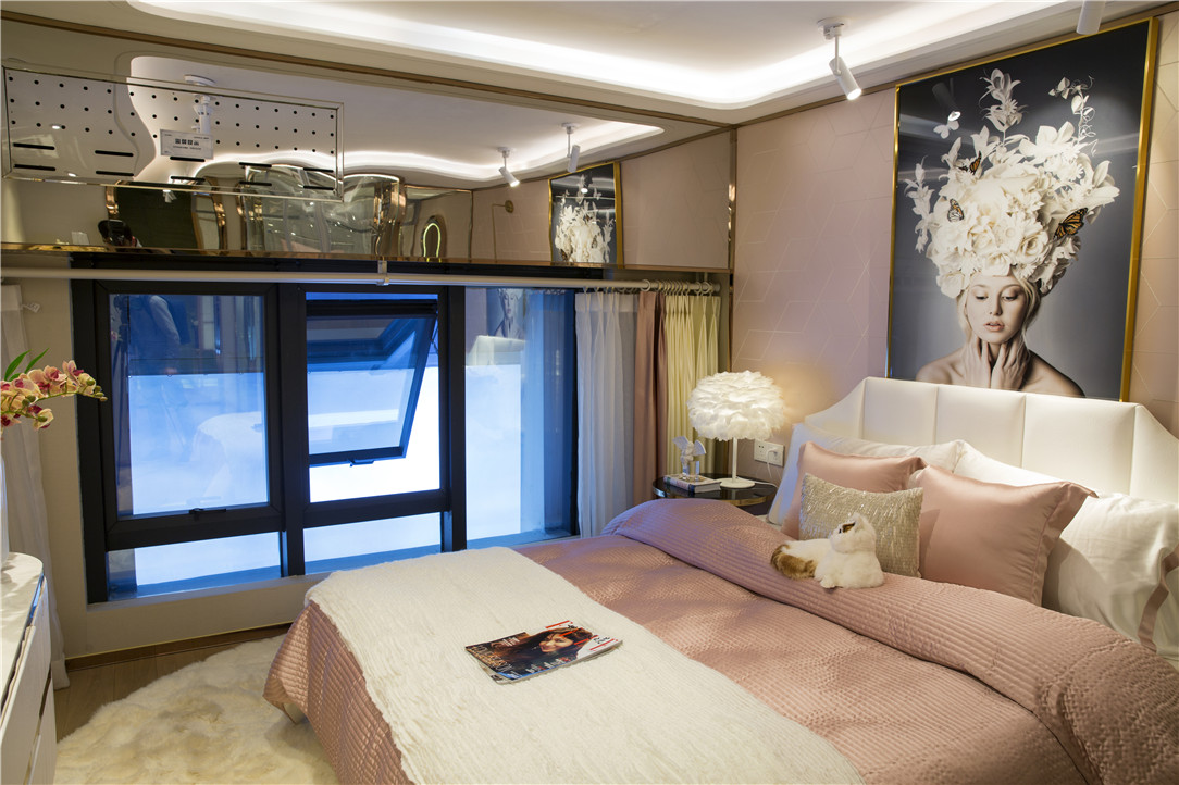 ▲上下雙臥室闊景落地窗設計,增加了親近自然的空間,陽光由通透的玻璃窗鋪灑進來,讓臥室內感覺更加輕松、自由。