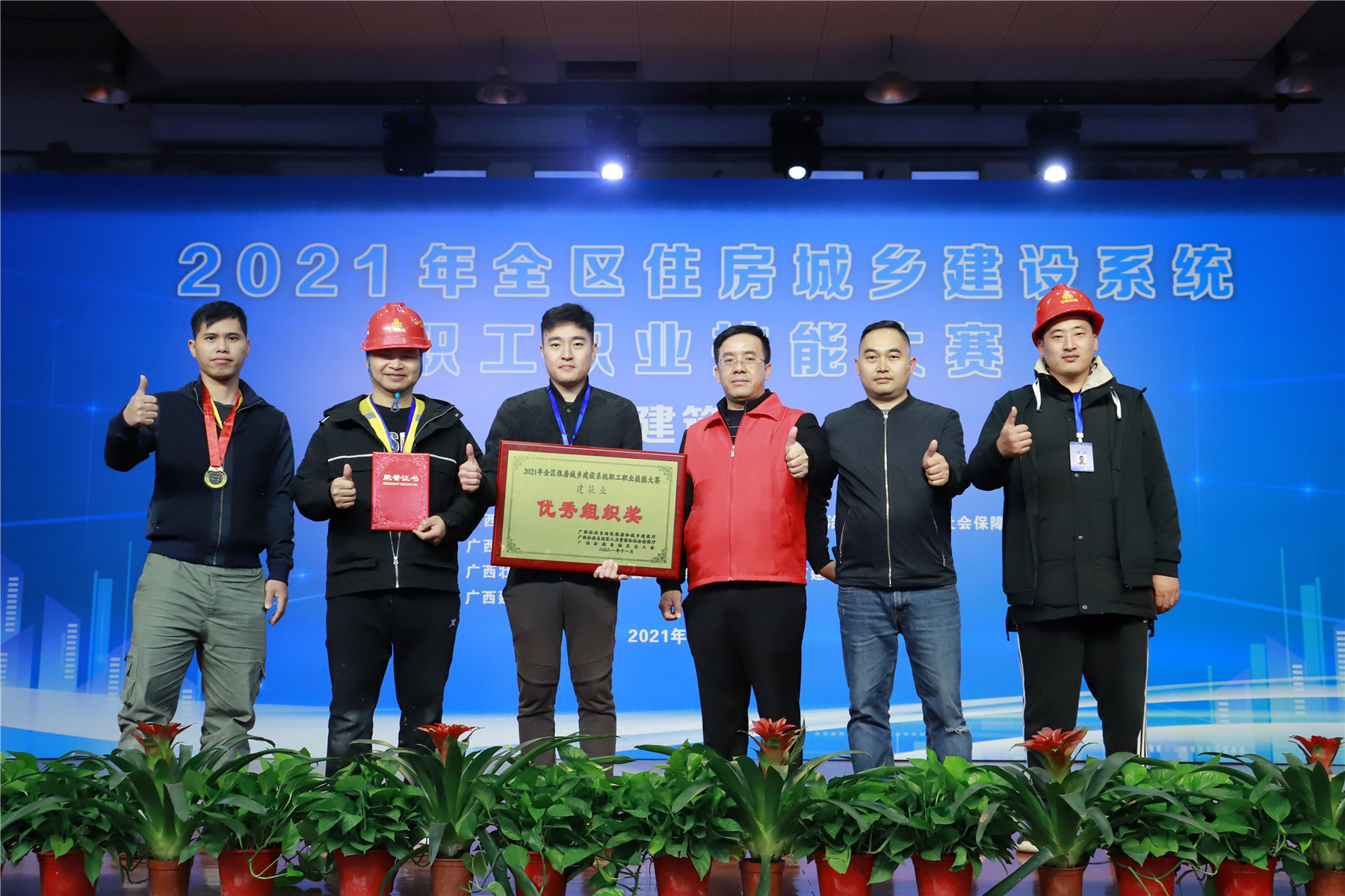 2021年11月17日,全區住房城鄉建設系統職工職業技能大賽在桂林落下帷幕。華輝集團參賽選手榮獲瓷磚貼面第一名的好成績,集團榮獲“優秀組織獎”。