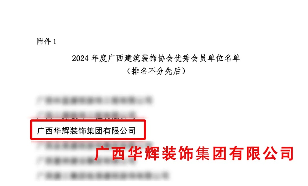 廣西華輝裝飾集團(tuán)自加入廣西建筑裝飾協(xié)會以來,在協(xié)會的指導(dǎo)幫助下,深耕裝飾領(lǐng)域,實(shí)力持續(xù)攀升,目前是廣西建筑裝飾協(xié)會的常務(wù)副會長單位。未來,華輝將在主管部門及協(xié)會的領(lǐng)導(dǎo)下,與各界同仁一起,共同為推動廣西建筑裝飾行業(yè)健康發(fā)展添磚加瓦!