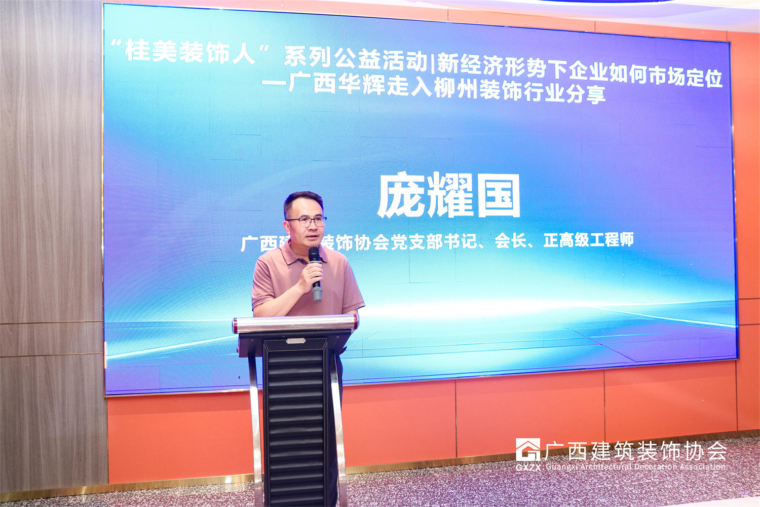 2025年8月8日,廣西建筑裝飾協會在柳州舉辦“桂美裝飾人”系列公益活動——新經濟形勢下企業如何市場定位暨廣西華輝走入柳州裝飾行業分享專題會。本次活動由廣西建筑裝飾協會主辦,柳州建筑裝飾協會、廣西華輝裝飾集團有限公司承辦,來自柳州市建筑裝飾協會會員企業約50位負責人參加本次會議。